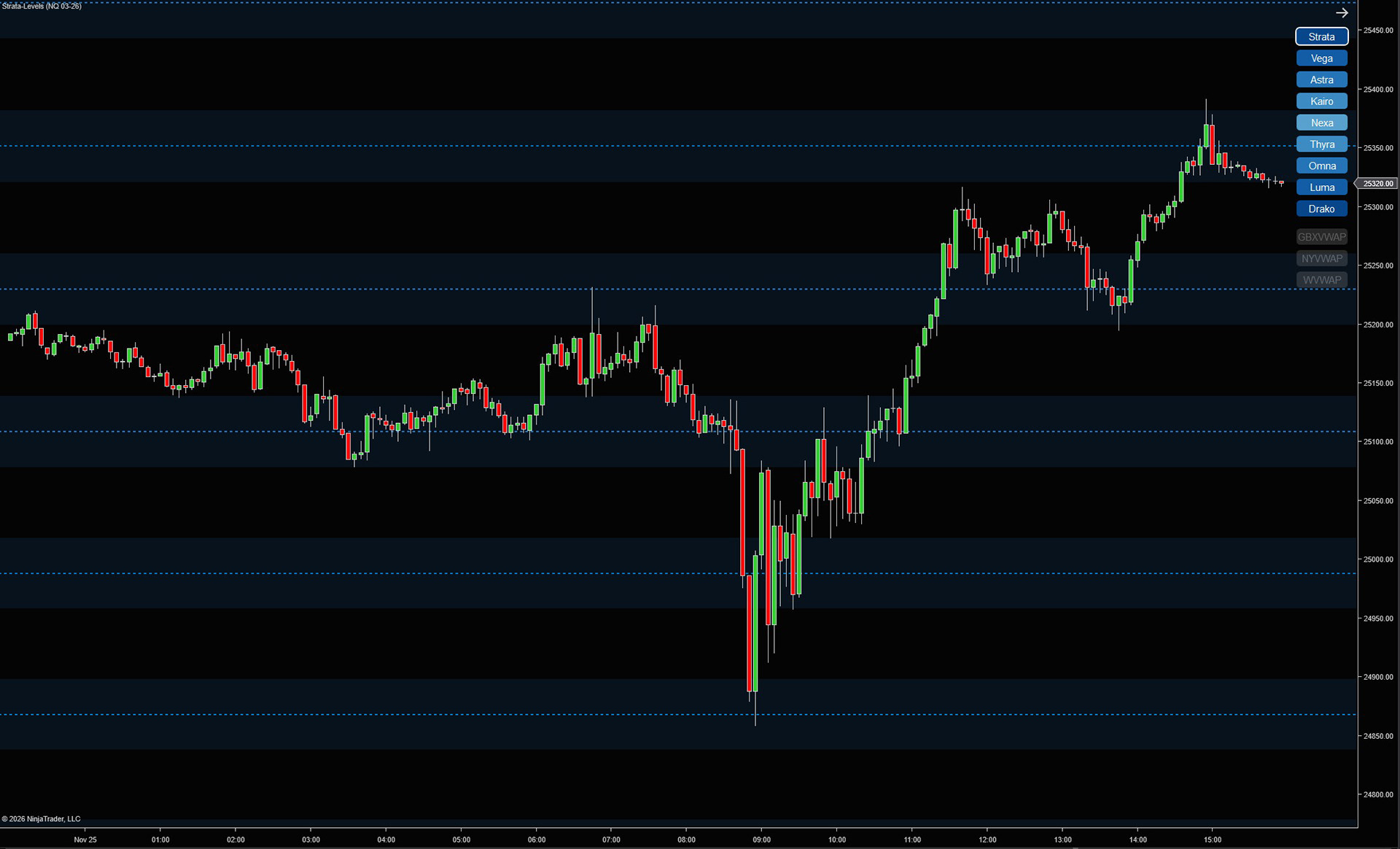 If the instrument is viewable and has data within NinjaTrader, traders can currently apply Strata Levels to: