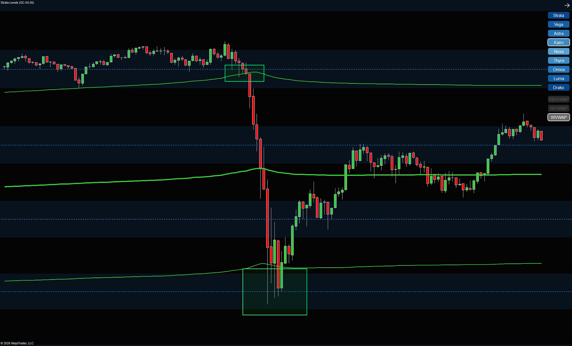 Strata Levels includes toggleable VWAPs such as: