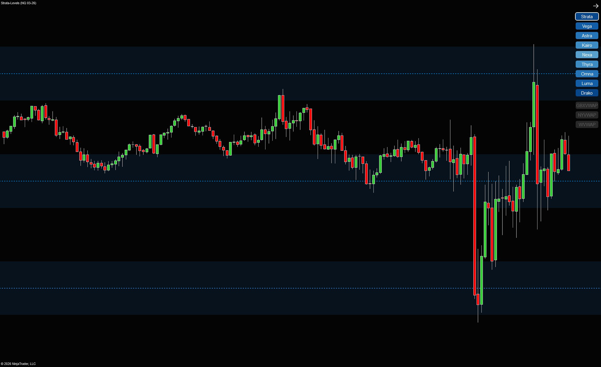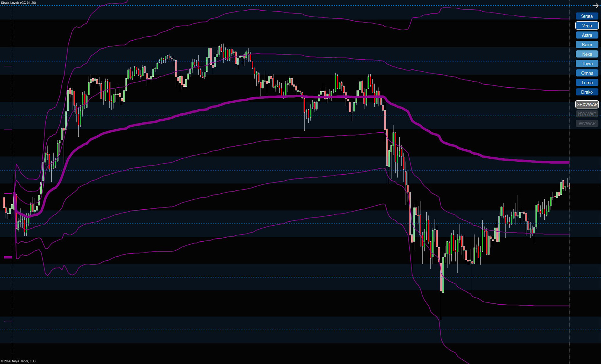 Strata Levels introduces a fixed structure grid around VWAP, segmenting price action into distinct zones above and below the session’s center.