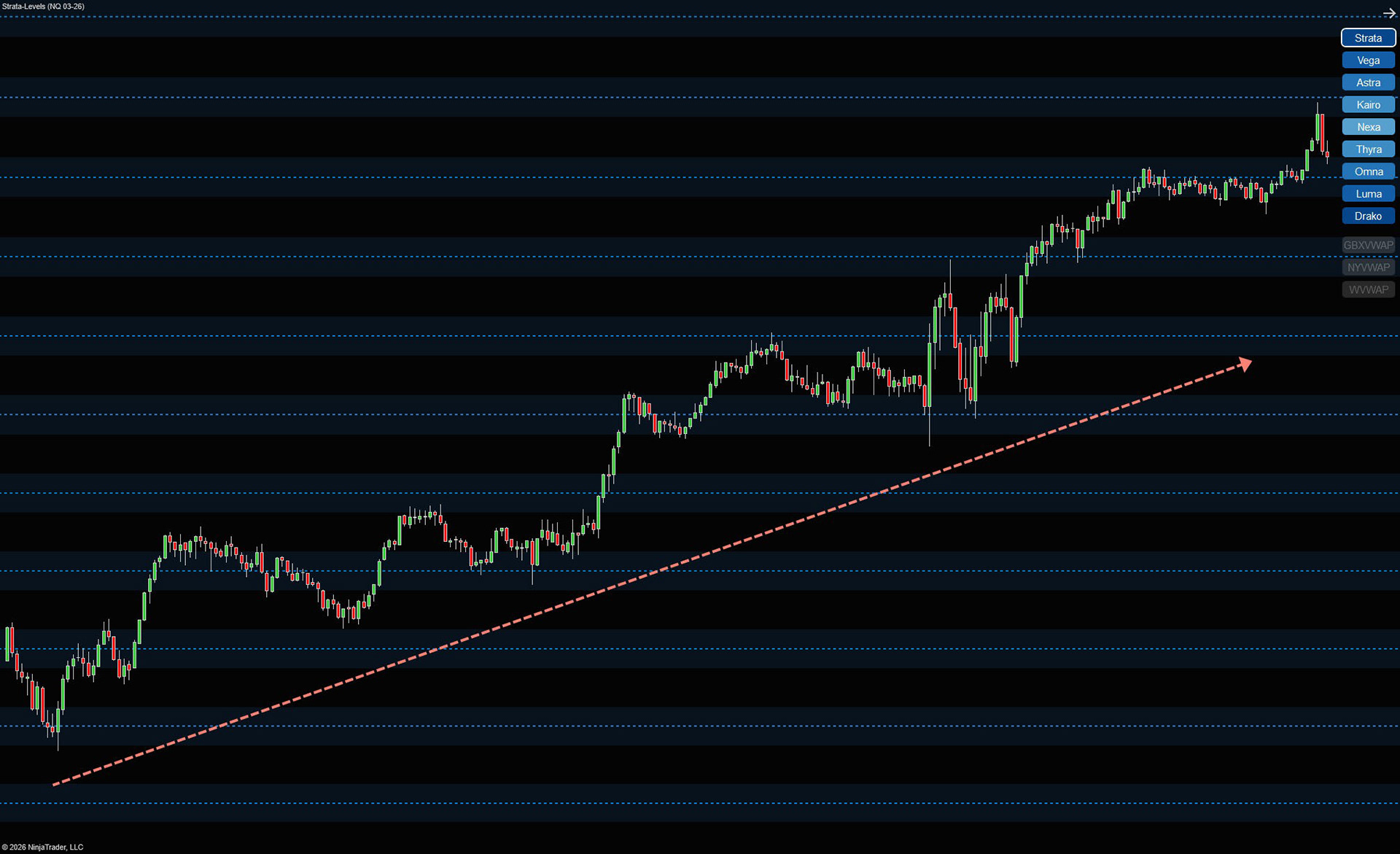 Our Strata Levels framework combines session-based VWAPs with a fixed market structure model to highlight where price is most likely to react, stall, or accelerate. Rather than using VWAP or structure in isolation, Strata Levels shows how they interact — giving traders a clearer picture of context before making decisions.